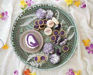 紫山芋「ウベ」を使ったスイーツを販売している